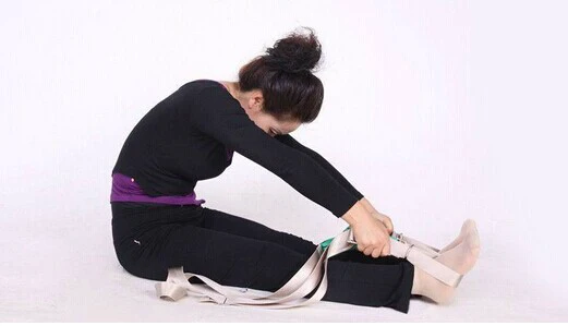 坐直,將兩條帶子掛在腳上,雙手盡力抓到帶子前端,拉直雙臂,後背盡力外撐,繃起,每次2、3分鐘,後背有痛、癢、酸、麻以及肩周問題都會慢慢消失。