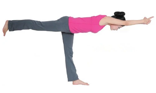 4在左腿抬高到与上身成一条直线时,右腿始终保持挺直状态,保持动作20秒。