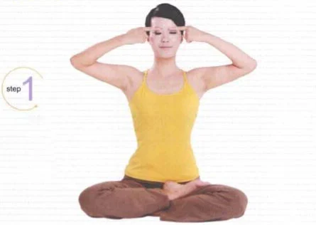 1、盤坐在墊子上,輕輕閉上雙眼,保持均勻呼吸。將雙手食指搓熱,然後輕輕刮動上、下眼眶各18次。