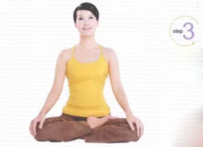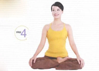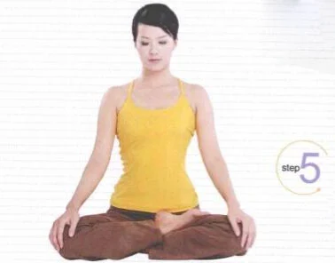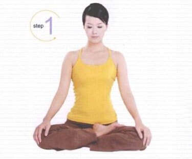 1、取半蓮花坐姿,上身抵直,雙手放在雙膝上,閉眼,深吸一口氣,慢慢吐出。
