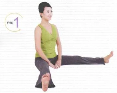 1、挺直腰背坐在墊子上,兩腿盡量與兩側分開。