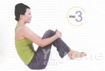 2、彎曲雙膝,雙臂抱住雙膝,雙手十指交扣。