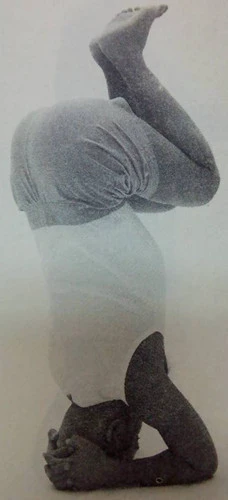 以上三段講述了如何透過一些方法以確保頭倒立所需要的平衡。在一些人的印象中認為,可以將腿拋起向上,只要有別人的幫助,抓住拋到空中的腿就行了;或者是依靠一堵固定的牆支撐,只要他們的雙腿能被猛力拋起來。這樣的學生經過數個月的練習後,在練習這個體式時依然沒有安全感,總希望找一個支撐的東西。往往是哪些一開始就沒有在幫助下練習的同學,幾天內就能掌握這個體式中必要的技巧。