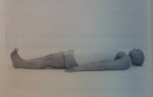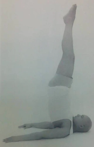 練習者首先仰臥在地上。如圖所示。全身所有的肌肉完全地放鬆.然後從他的髖關節開始緩慢地升起雙腿,到與地而成30°角的地方.在這裡保持幾秒鐘,然後從這個角度雙腿再次向上舉起30°並保持穩定。接著完全舉起腿到與地面成90°角,同樣保持幾秒鐘。
