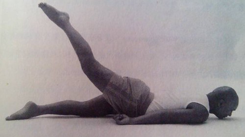 與蝗蟲式相同,練習者首先俯臥在墊子上,全身的肌肉放鬆,並且在整個練習的過程中保持正常的呼吸。練習時舉起其中一條腿,同時要收縮與之相對應的肌肉。練習者舉起這條腿的動作要盡量緩慢、穩定,除了確實參與工作的部外,其他部位應不會感受到什麼壓力。與此同時軀幹和另一條腿要盡量接近地面。當這條腿已經提升到盡可能高的角度後,開始緩慢放回到初始位置。然後以同樣的方法提起另一條褪,就這樣輪流地提起雙腿重複練習適當次數。在高級練習時,控制呼吸並繃緊肌肉,但是確保不要由於這個原因而導致身體的緊張。當練習者感到足夠強壯,可以很好地練習全蝗蟲式了以後,就可以練習半蝗蟲式了。