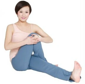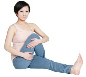2.左腿伸直不懂,彎曲右腿,抬起跨過左腿,上半身保持直立不動,兩手分別扶住右大腿。