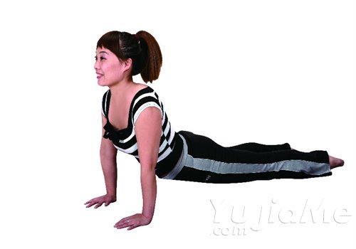 ★手臂支撐力量不夠抬起骨盆的人,可以在大腿根部下方墊一個墊子。