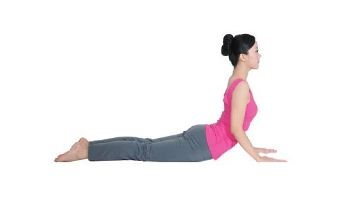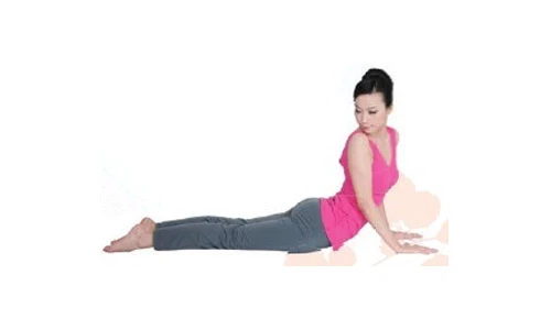 3吸氣,手臂慢慢伸直,逐步抬高背部、頸部、肩部和腰腹部.