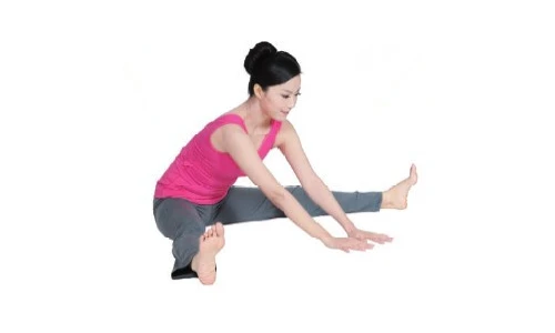 3上半身俯身向前傾,手臂伸直,感受背部、腿部被牽拉的感覺.