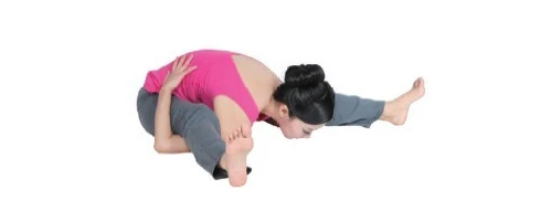 5上半身繼續向前傾,然後彎曲雙臂,讓雙手手掌心貼背,保持姿勢20秒。