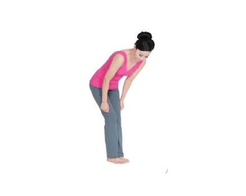 4讓身體恢復直立狀態,休息片刻後增加雙膝彎曲幅度。保持姿勢20秒。