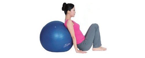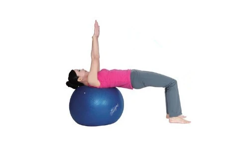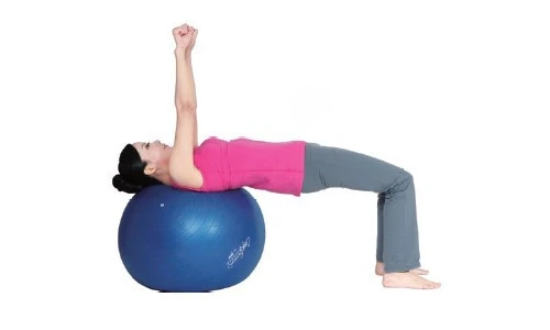 2雙手扶住瑜伽球,讓後背在瑜伽球上尋找最佳平衡著力點.