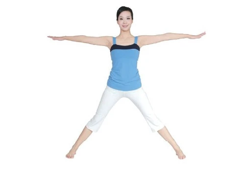 2雙腿分開約兩肩寬,雙手向兩側平行打開。重複:5一8次