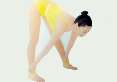 2、吸氣,上身慢慢前彎,吐氣,不要勉強,盡力就好,彎到最大限度,停留做呼吸。