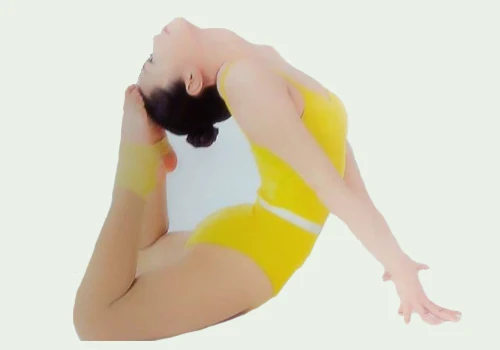 4、吐氣,兩腳向上彎曲,使其碰到頭為止,若初學者無法做到,盡力即可,切記勿勉強。