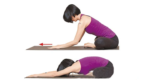雙手觸摸地面,一邊深呼吸,一邊讓上半身靠近地面,10~15個呼吸為1組,次數不拘。