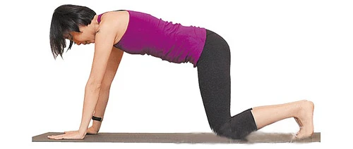 我們先雙腿膝蓋著地,跪在墊子上,背部打直,雙手掌全部撐地。