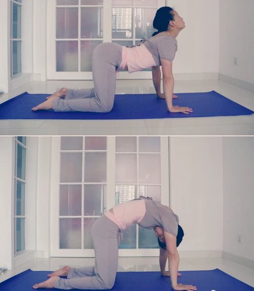 半身坐在膝蓋上,然後慢慢完全前鋪上半身,兩臂屈肘放於身體的兩側,想像自己像一隻蜷縮著放鬆的小貓,感覺非常舒服。兩臂打開向前平伸,舒展拉伸上半身緊繃的肌肉群,加速血液流動,慢慢讓自己進入半睡眠之中……