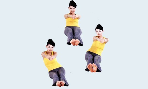 兩腿向前伸直,十指相交往前平舉。身軀先順時針方向轉動,以髖部為中點,意念集中在腹部,上體軀幹最大可能的往右、前、左、後旋轉,配合呼吸,吸氣時往後傾,呼氣時往前傾。三圈後換逆時針方向三圈。