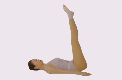 2、吸氣,雙腿離地朝向天花板,吐氣。