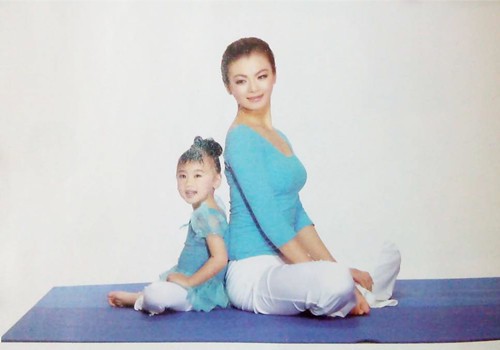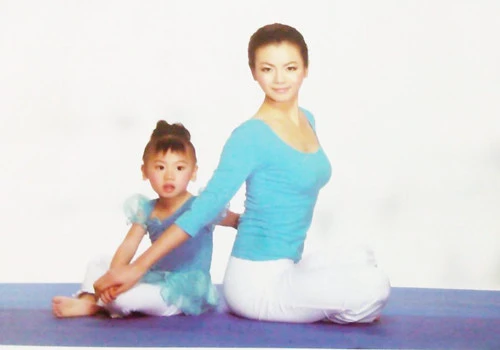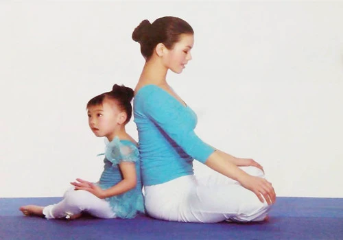 1、大人和孩子背靠背,蓮花坐姿準備。