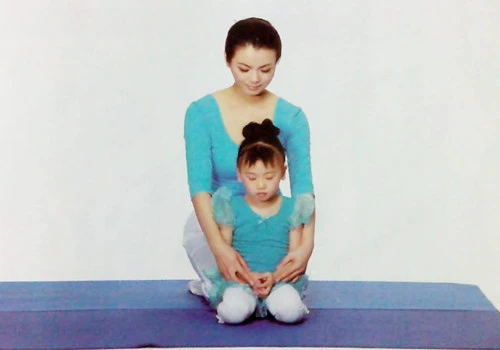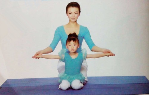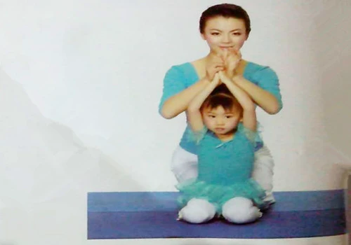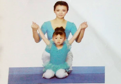 1、大人在孩子後面採取金剛跪坐,孩子在前,採取跪立姿勢。