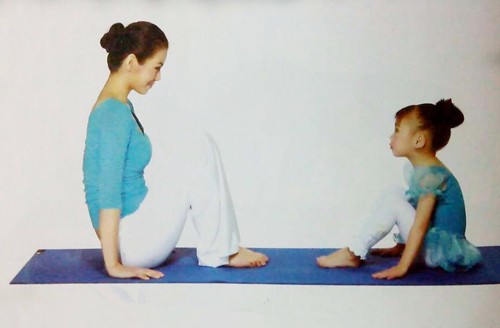 3、呼氣,雙腳依然夾緊,抬離地面,然後保持這個姿勢,自然的呼吸。注意,在孩子後面放上防護品,以免孩子控制差導致出現受傷。