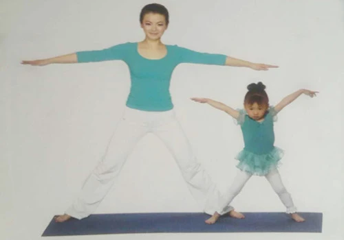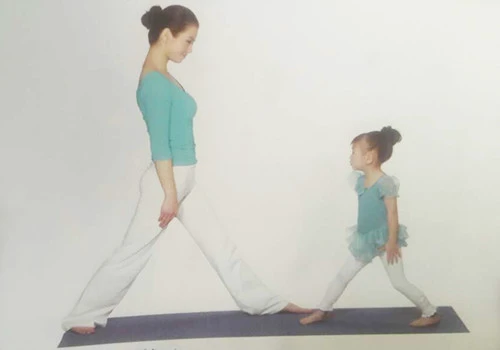 1、大人與孩子面對面站立,雙腳同時大大分開。