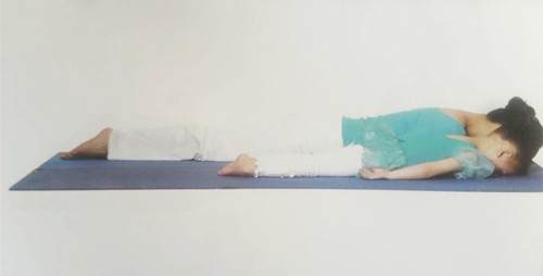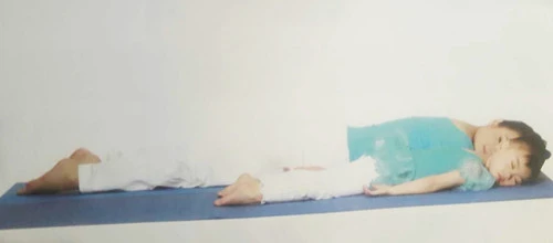 4、慢慢放鬆身體,呼氣,臉轉向任意一側,閉眼,調息。