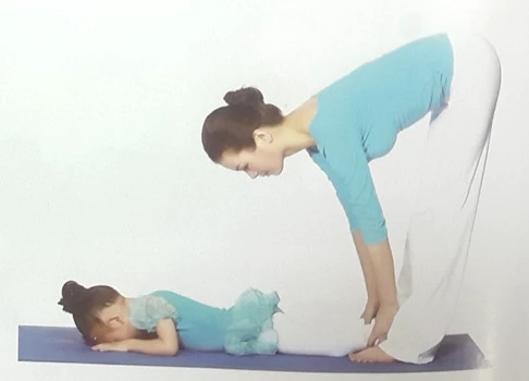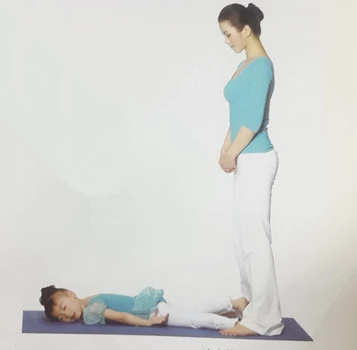 6、孩子採取俯臥放鬆,大人採取站立姿勢放鬆調息。