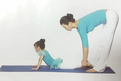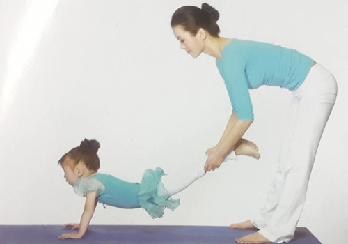 孩子練習手推車式可以有效增強手臂的力量,促進血液循環,增強免疫力,使孩子和大人都有健康的身心。