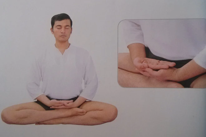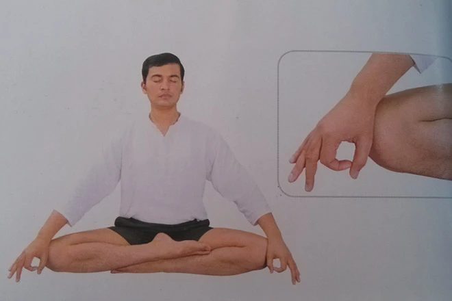 也叫下巴式,這是個手掌心向下的手勢。它使冥想體式更具有能量,幫助胸部區域打開,橫隔膜向上提起,能提升精神層面的能量。在情緒低落、憂鬱時練習,能起到非常好的調節作用。