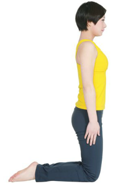 1.跪立在墊子上,大腿與小腿垂直,雙手自然放在體側,眼睛平視前方,均勻呼吸。