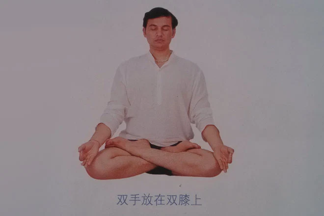2、這是最基本的蓮花式。膝關節、踝關節不靈活的人起初將感到膝部折磨人般的疼痛,通過堅持不懈地練習,疼痛將逐漸消失,可以做到很舒適地長時間保持這一體式。