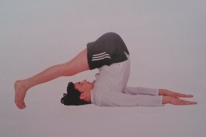 3、雙臂鬆開,像犁式一樣,身體回落到地面。