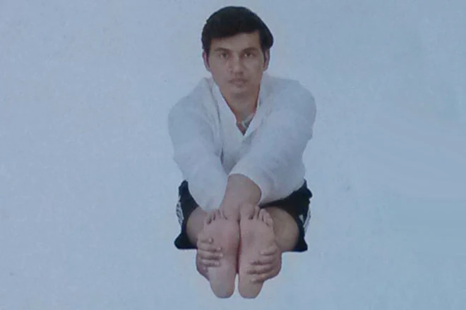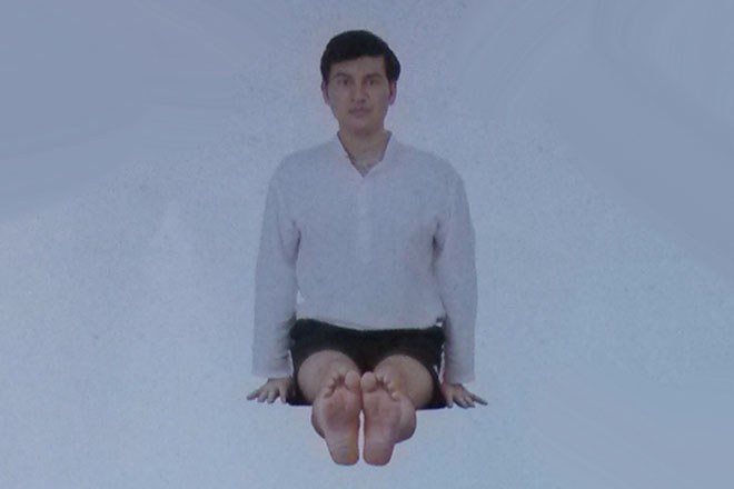 1、坐在地面上,雙腿向前伸直,膝蓋繃緊,注意雙腿的膝蓋、腳跺、腳後跟和大腳趾要相接觸,手掌放在臀部兩側的地面上。深呼吸幾次。