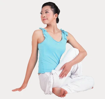 半脊柱扭動式,也稱簡化扭脊式,是在扭脊式的基礎上,加上一個屈膝盤腿的動作而成。它同扭脊式一樣,能糾正脊椎骨的排列,疏通體內能量的流動。