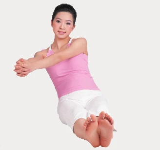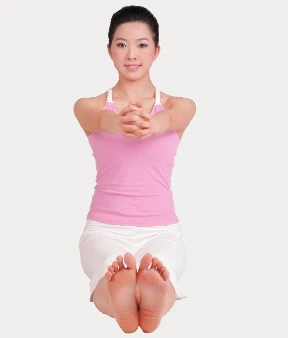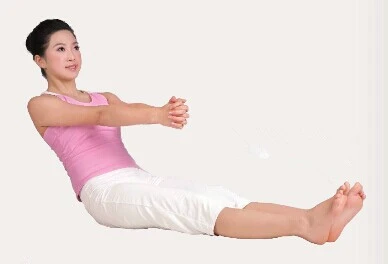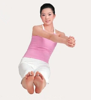 1、長坐,雙腿伸直併攏,雙手握拳,雙臂前伸且平行於地面,吸氣。