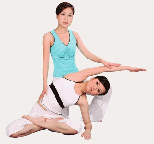 如果身體側壓時感到身體晃動,可讓教練把手貼扶在你的腰側和手臂上,並將大腿靠著你的背部,以幫助你保持身體的穩定。