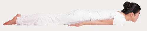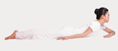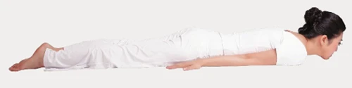 1、俯臥,下巴點地,雙臂放於身體兩側,掌心貼地。