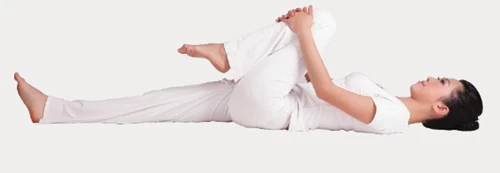 抱膝壓腹式,也稱炮彈功。練習時先仰臥,然後雙手抱膝,盡量使膝蓋、大腿靠近胸腹部。它能促進深層的呼吸,幫助排出體內濁氣。