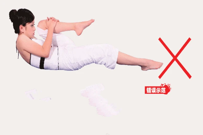 3、大腿盡量靠近胸腹部,抬起上半身,用下巴去碰膝蓋。