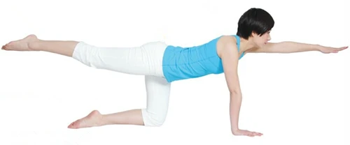 3、吸氣,伸直左臂和右腿,和背部在一條直線上,右臂和左腿姿勢不變。