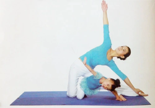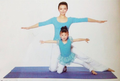 1、跪立,左腿向左伸直,左腳與右膝橫線對齊,吸氣。手臂側平舉與肩齊平,掌心向下。
