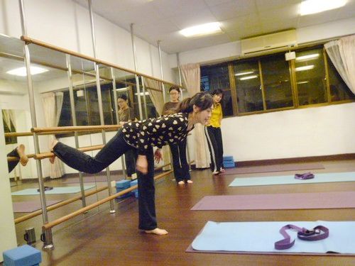 學員們的腿大都纖細較無力量,遇到站姿系列容易"掛",不過穿高跟鞋的功很高超。建議大家多鍛鍊腹部核心與腿的力量,才能穩踩恨天高卻不傷到腰椎與膝蓋。這期瑜米之伽利用把竿瑜伽雕塑腿形並強化腿部力量。