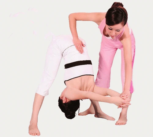 這個體式的梵語名是“Dwi konasana”,Dwi的意思是“雙”,kona的意思是“角”。做這個體式時,頭向下,雙臂盡量前伸,能使雙臂得到充分的伸展。