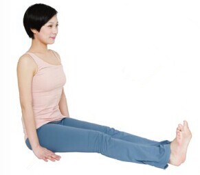 1.坐在墊子上,雙腿併攏向前伸直,雙手自然放在身體兩側,掌心向下撐地,眼睛看向前方,調勻呼吸。