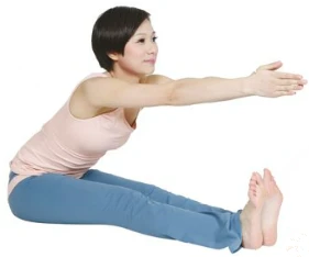 3.呼氣,以腰部為軸心,雙臂和上半身慢慢向前傾,直至雙臂與地面盡量平行。