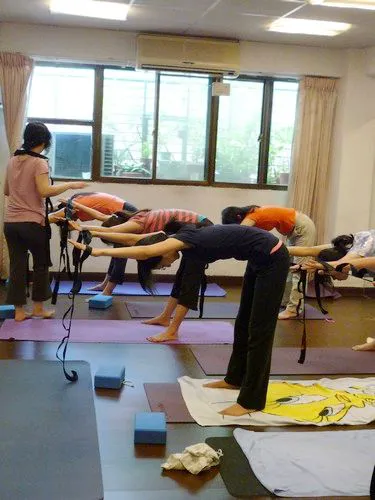 2、吐氣時身體往前彎,背盡量挺直,每次延展想著脊椎都再延伸、再拉長。