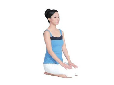 1、跪立在墊子上。小腿與腳背緊貼在墊面,雙手自然垂於體側,挺直腰背,眼睛平視前方。